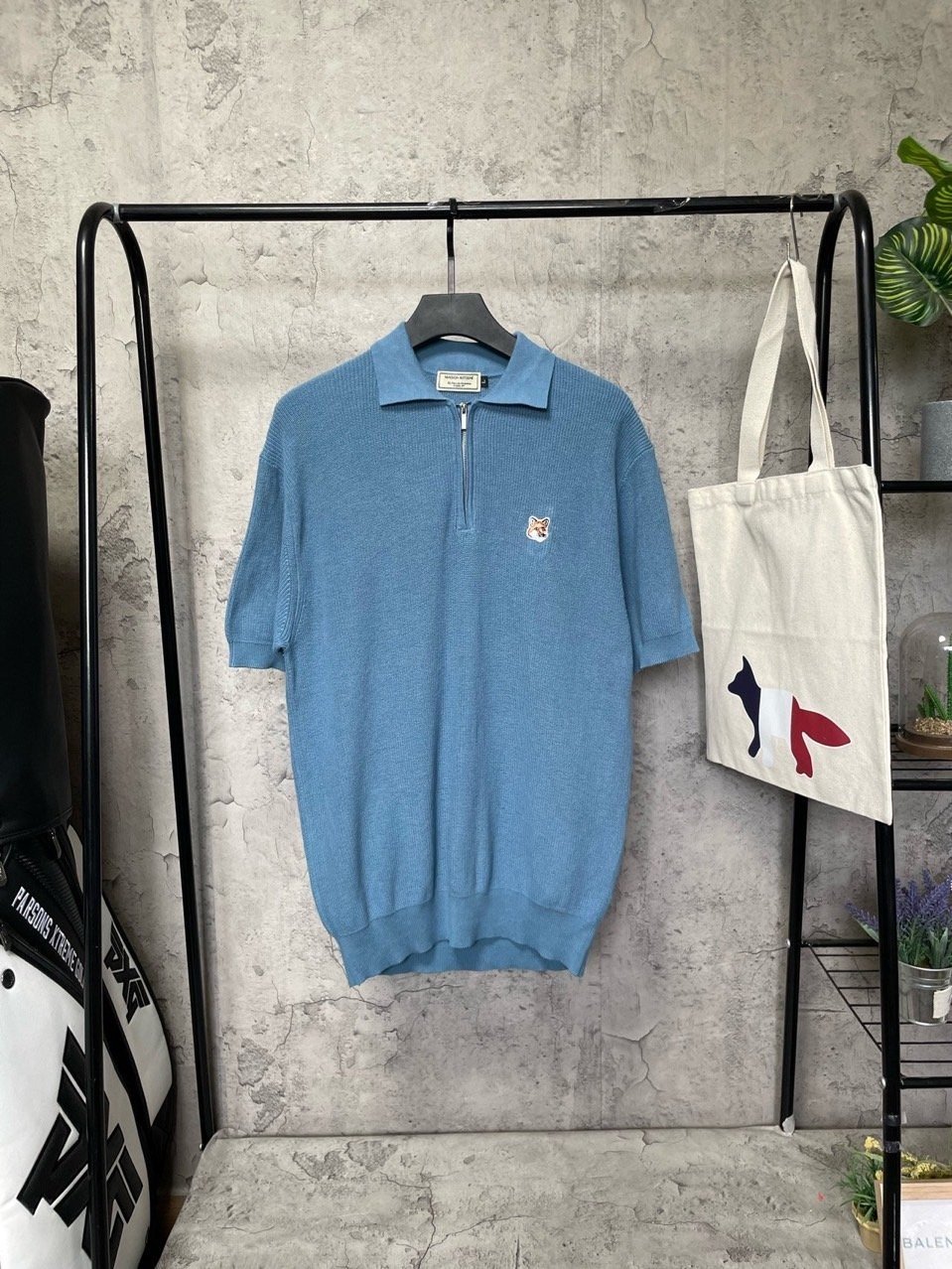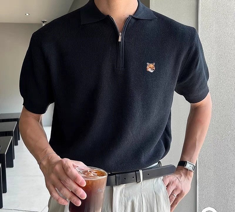 메종키츠네 코헨 하찌 카라 반팔 반집업